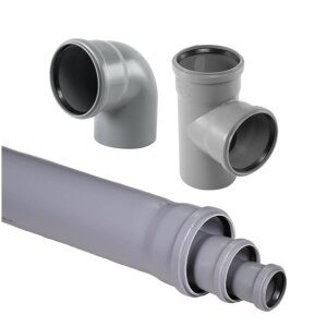 Kanalizacijske cijevi, koljena, spojnice i prateći elementi za izvedbu odvodnih sustava u domaćinstvima.